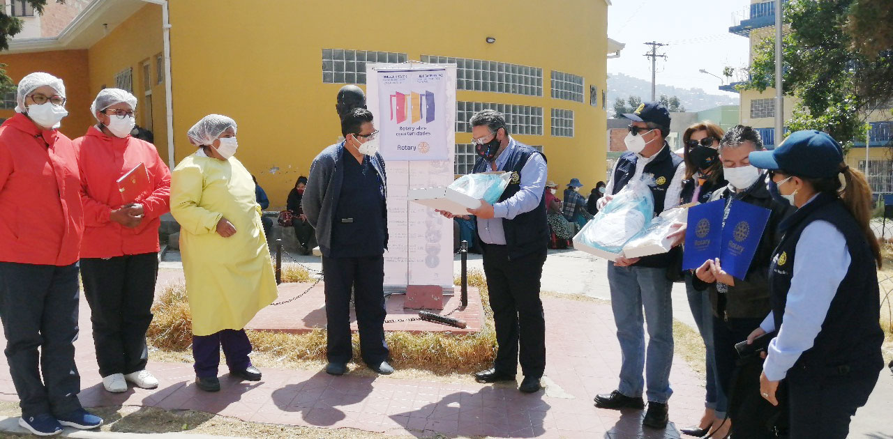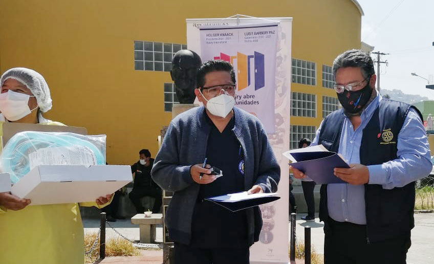 A raíz de la pandemia suscitada ocasionada por el COVID 19 y a fin de cubrir la falta de equipo e insumos para afrontar la emergencia sanitaria el RC Chuquiago Marka en fecha 6 de noviembre de 2020, hizo la entrega al Instituto del Torax dos (2) Unidades de Cascos de Oxígeno transparente de PVC y un par de circuitos D/PVC AD C/72, para ventilación mecánica no invasiva.